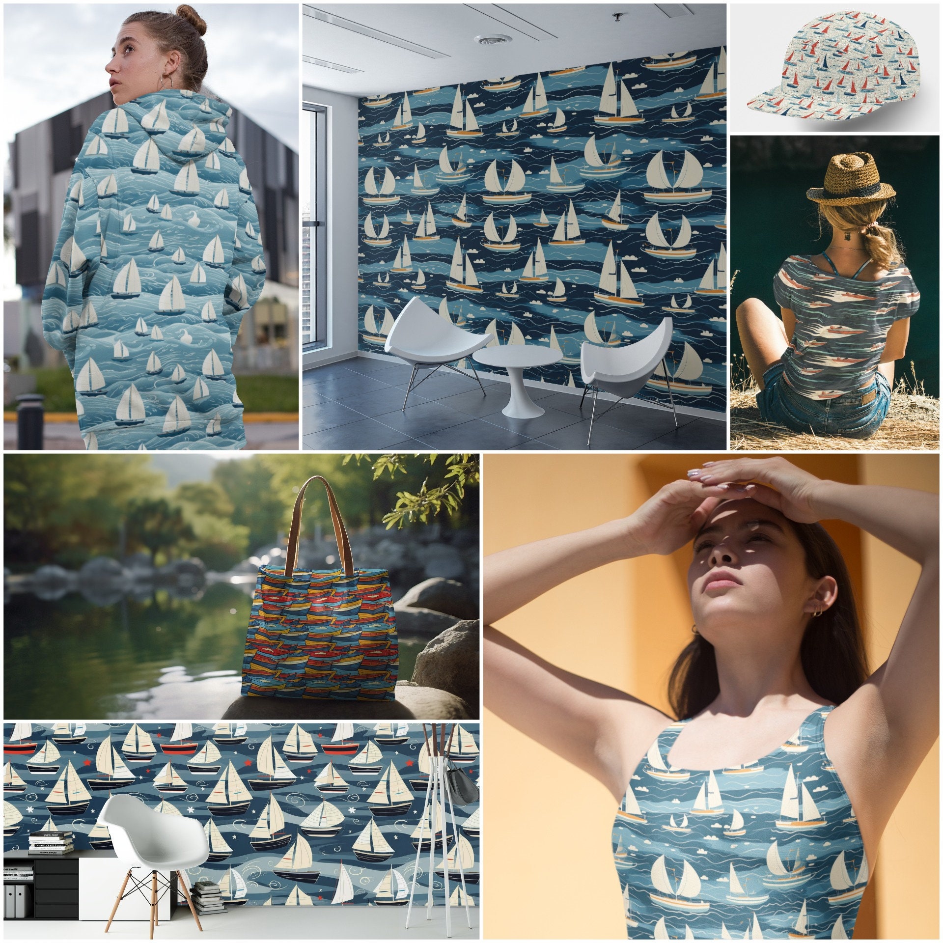 35 Boat Patterns Seamless Sailboat Patterns Repeatable Water Pattern ...