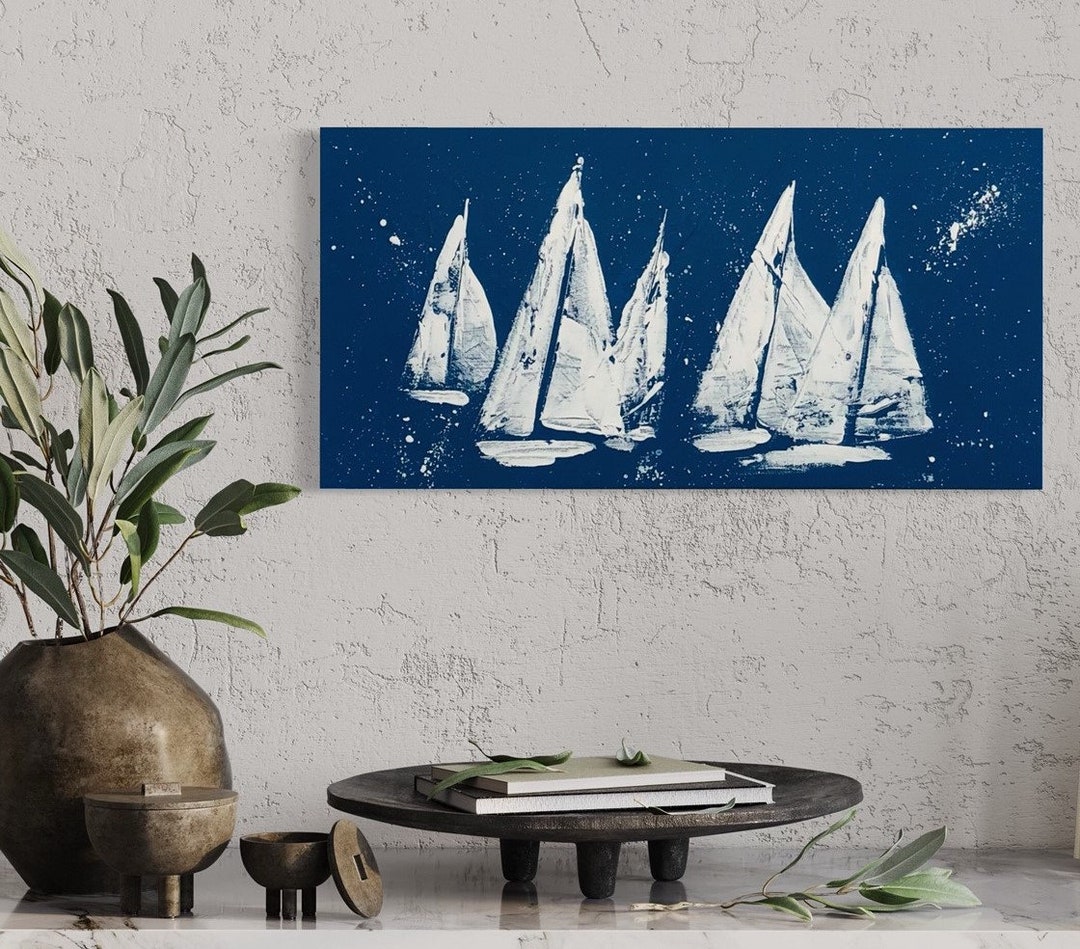 Abstract Sailboat Art, Hand-painted Nautical Boat Artwork for Coastal ...