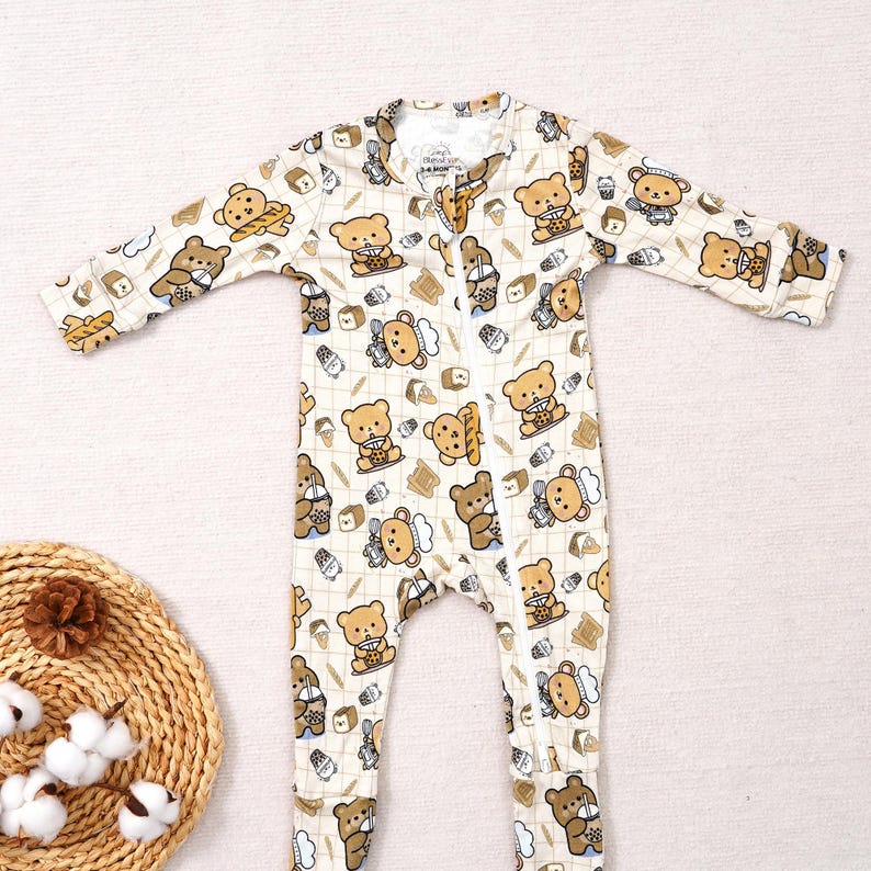 Boba Bear Bakery Cafe Bubble Tea Zippered Romper, Buttery Soft Bamboo ...