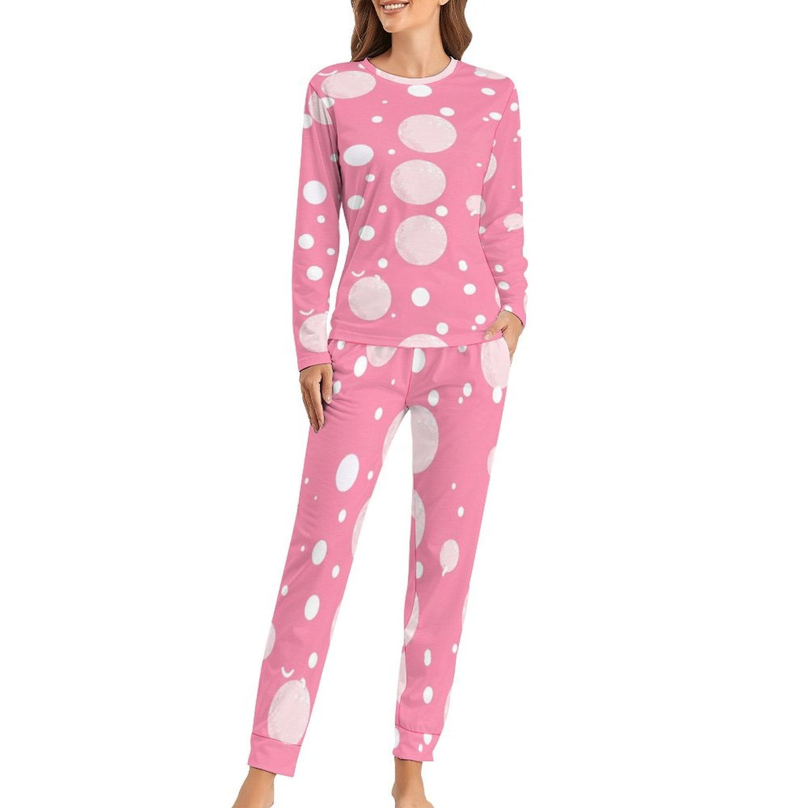 Pink Bubble Pattern Pajamas Woman Long Sleeves Cute Pajama Sets Two ...