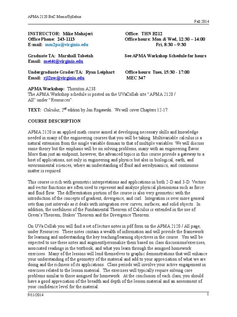 Boc+Memo Syllabus | PDF | Multivariable Calculus | Integral