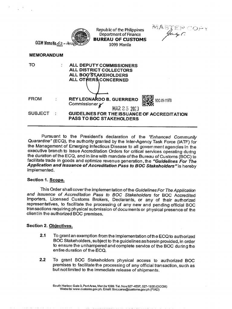 BOC OCOM Memo-62-2020: Guidelines For The Issuance of Accreditation ...