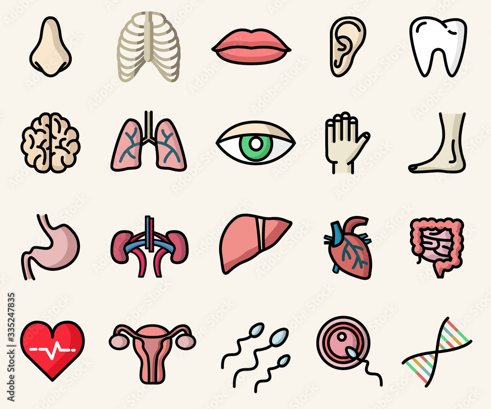 Colorful icons of anatomy and human body parts. Vector isolated ...