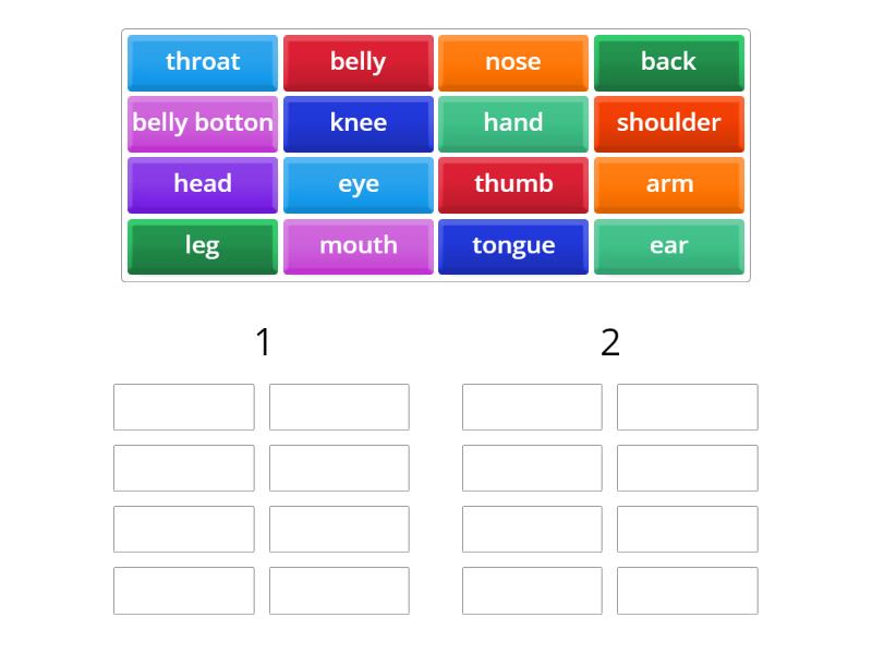 Health and Illness II. Body parts_B1 - Group sort