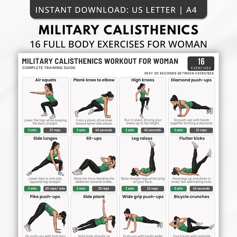 Military Calisthenics Workout Plan for Woman,full Body Bodyweight ...