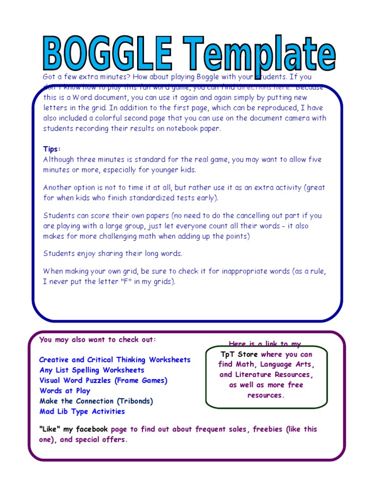 Boggle Template by The Cacti Teacher | TPT