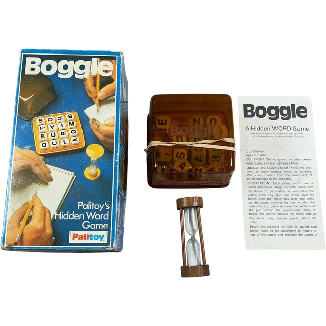 PALITOY BOGGLE HIDDEN Word Game 1970s Complete with Timer Dice Complete ...
