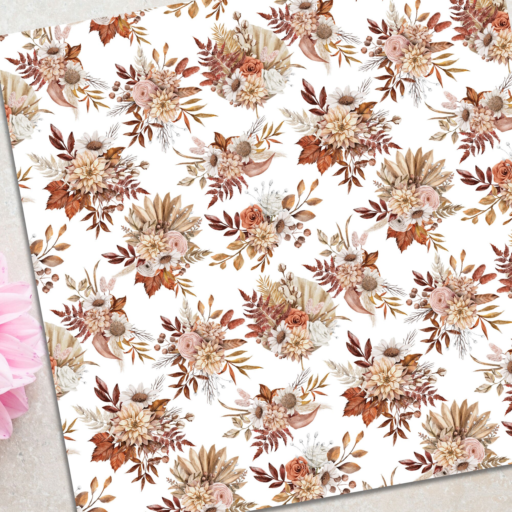 Seamless Pattern Boho Digital File for Fabric Fall Flowers Autumn ...