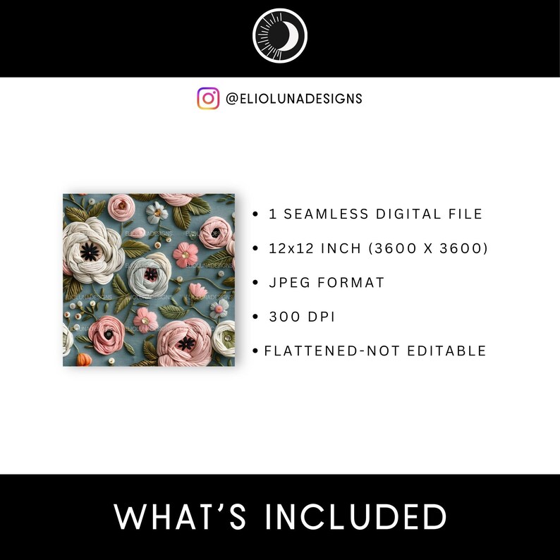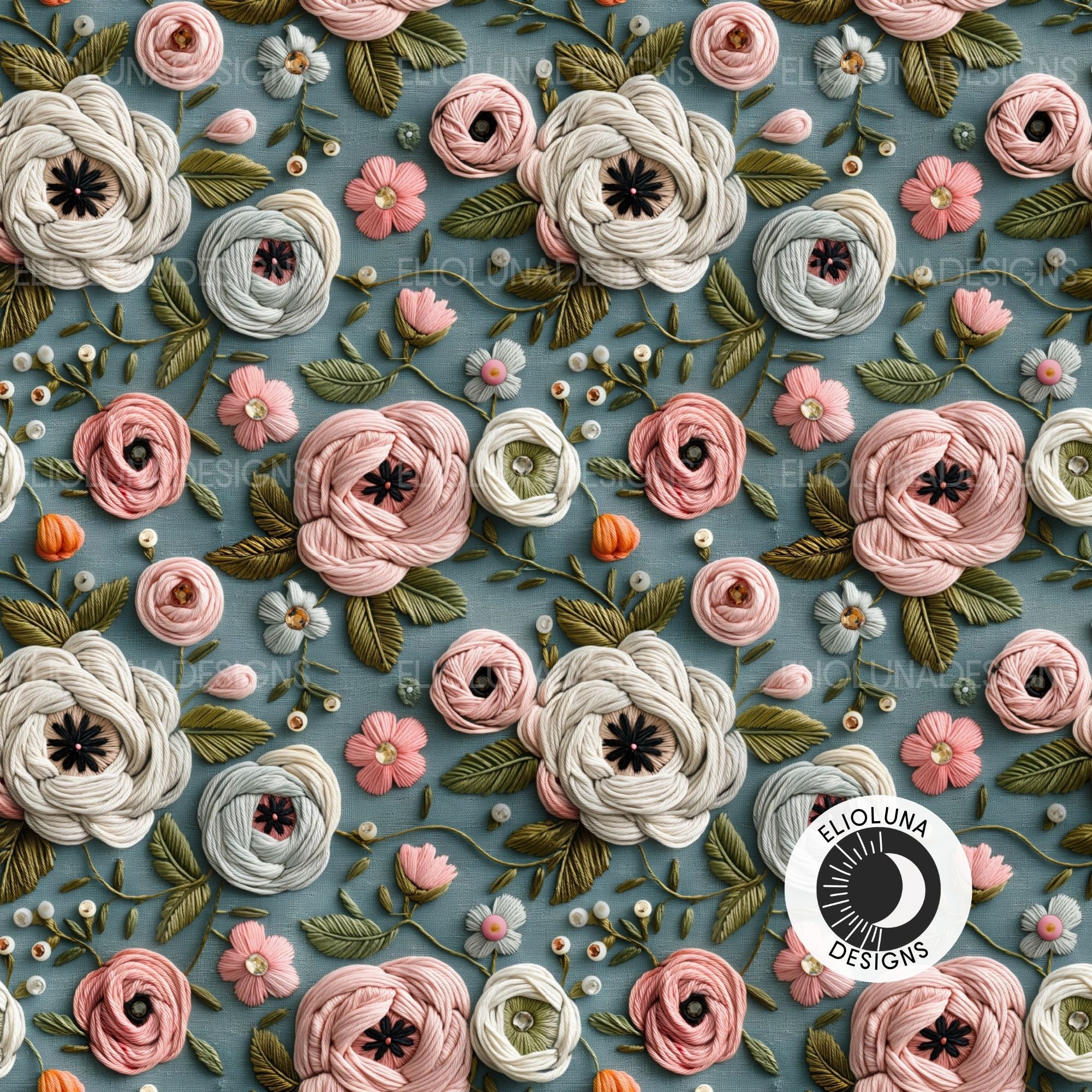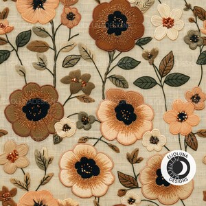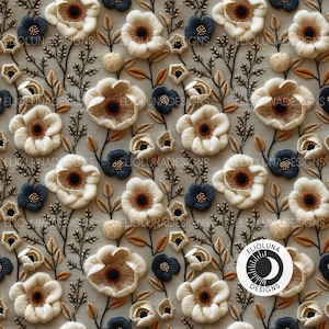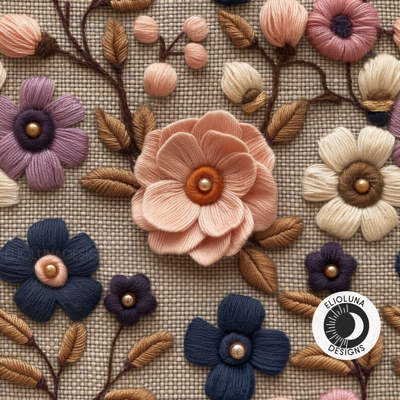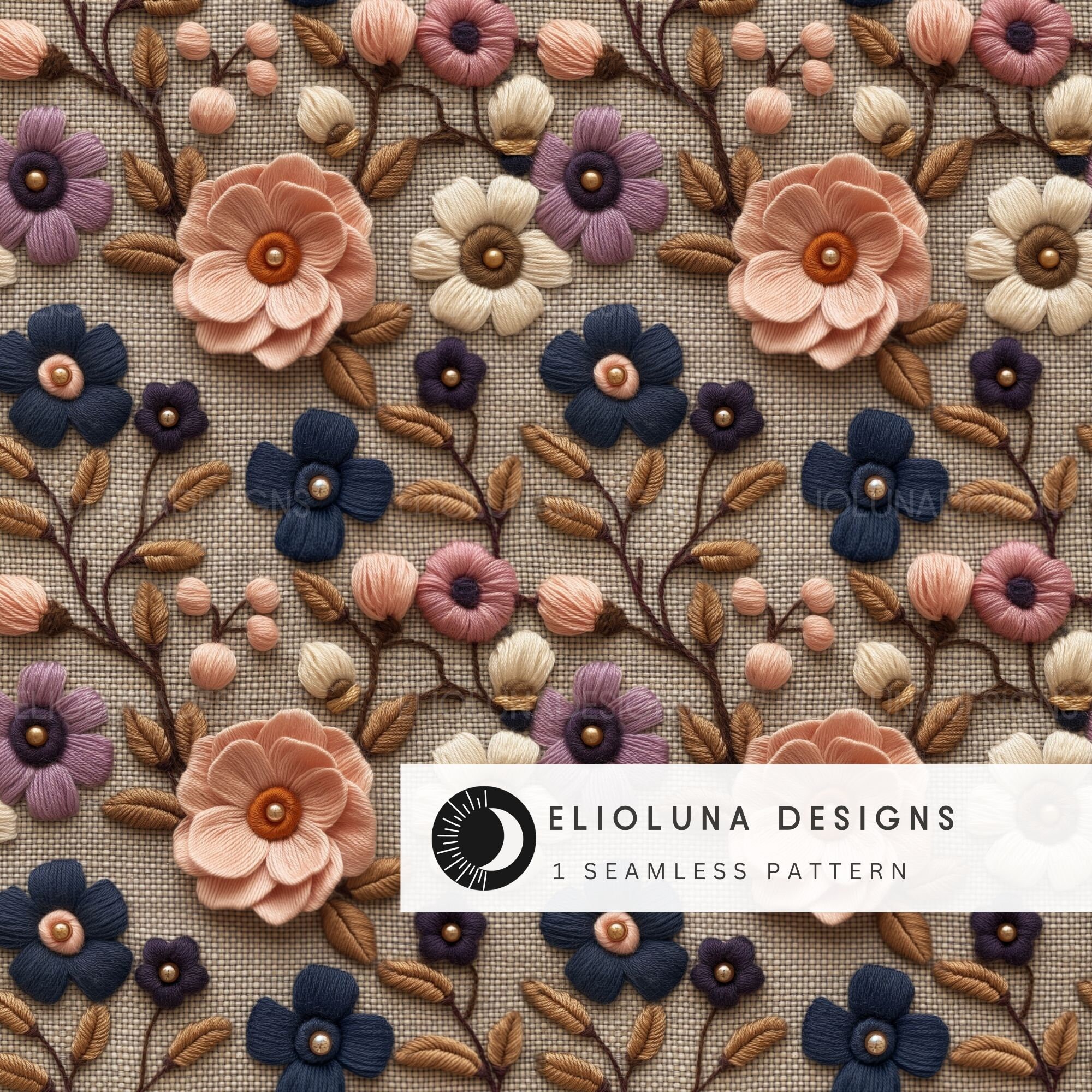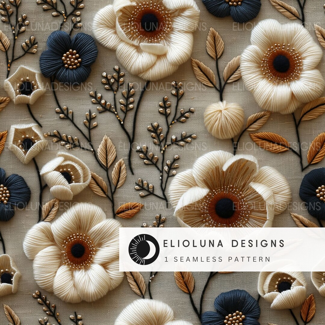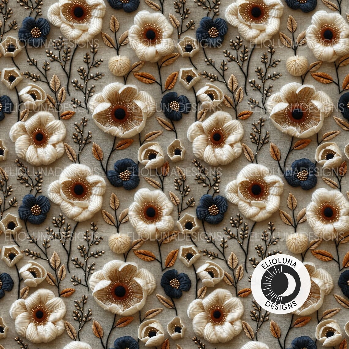 Boho Fall Florals Faux Embroidery Seamless Pattern 3D Floral Digital ...