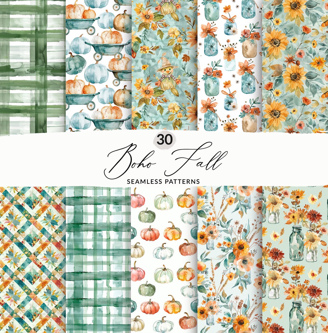 Boho Fall Seamless Patterns: Autumn Digital Paper Pack (JPG, Digital ...