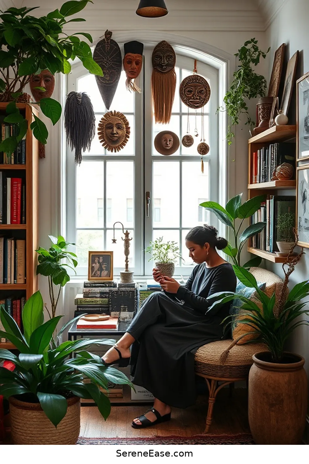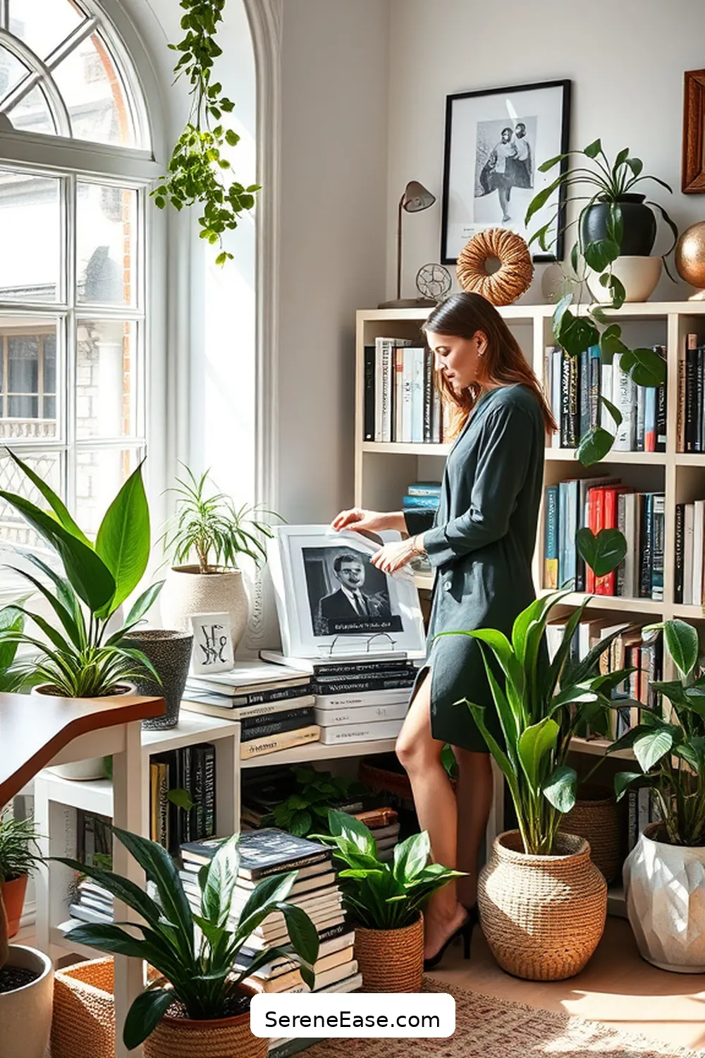 Bohemian Home Library with Plants and Books