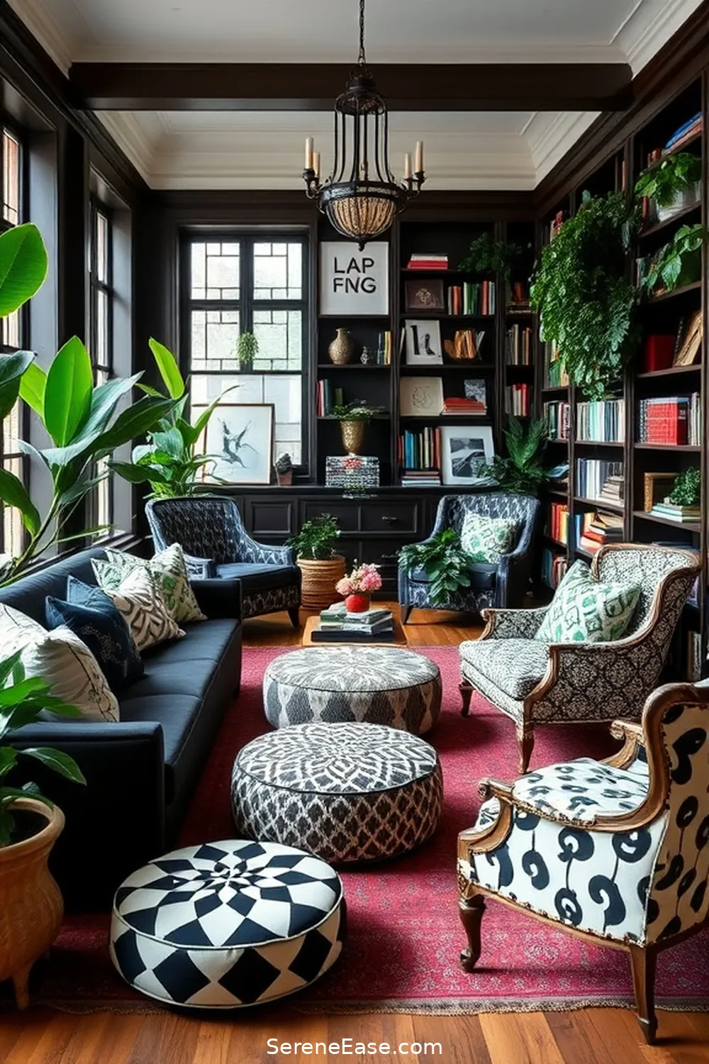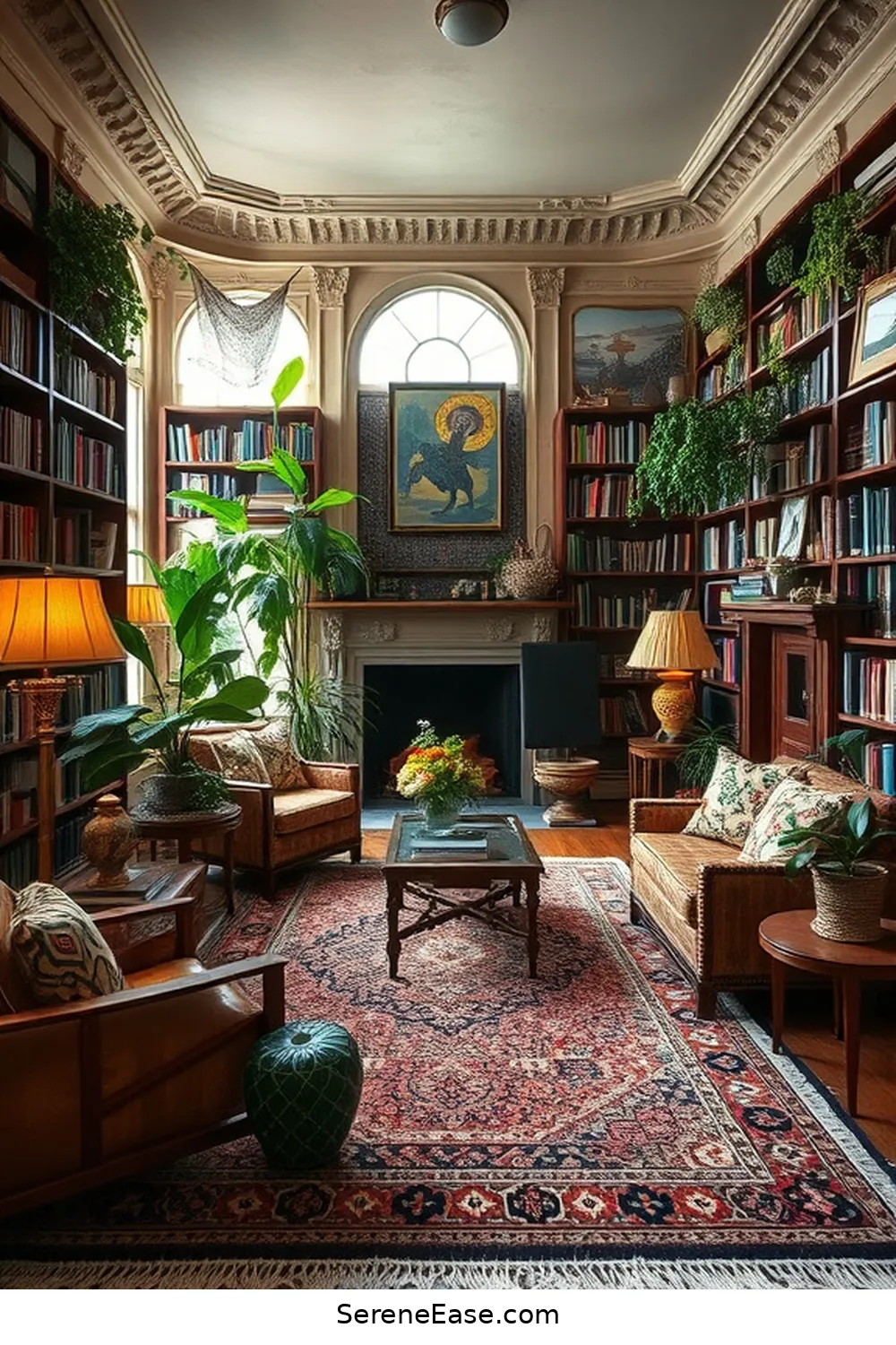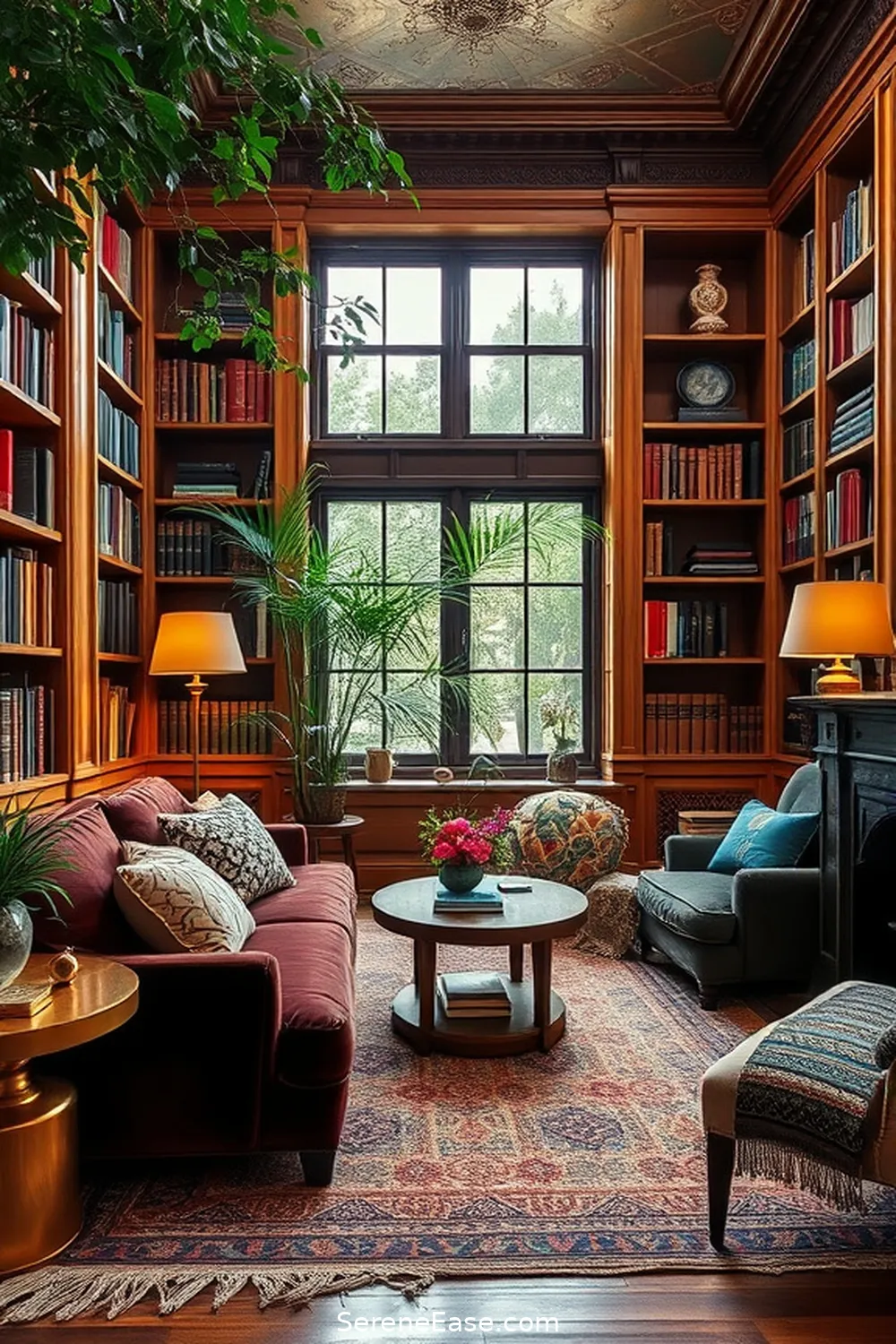 Incorporating Jewel Tones in a Bohemian Library Style - Serene Ease