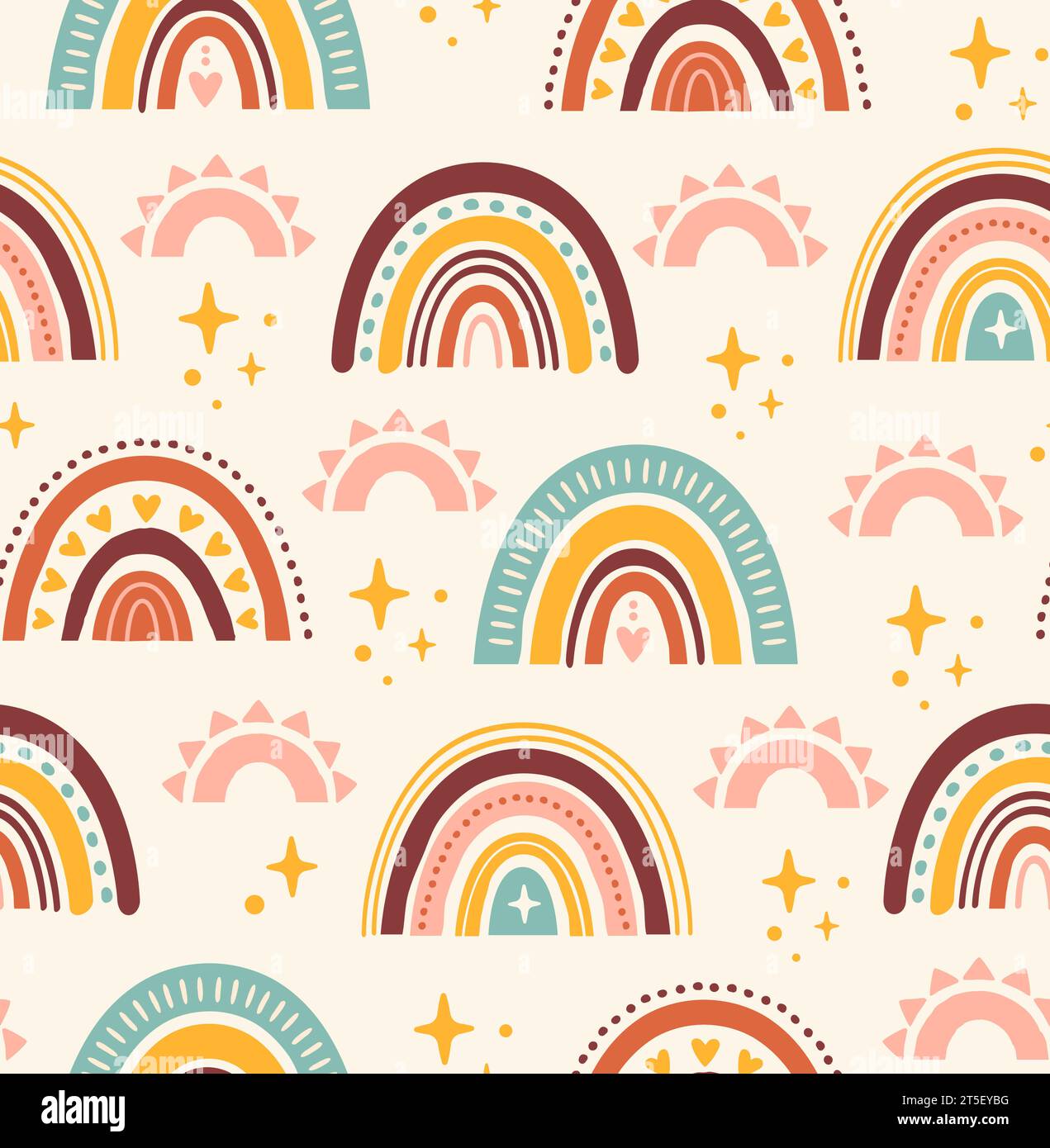 Vector seamless pattern with boho illustrations. Bohemian background in ...