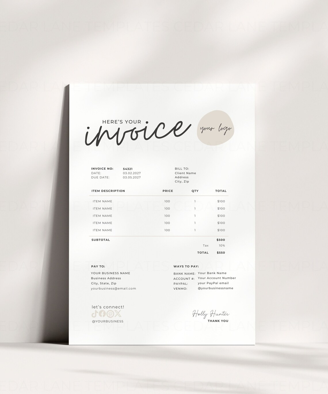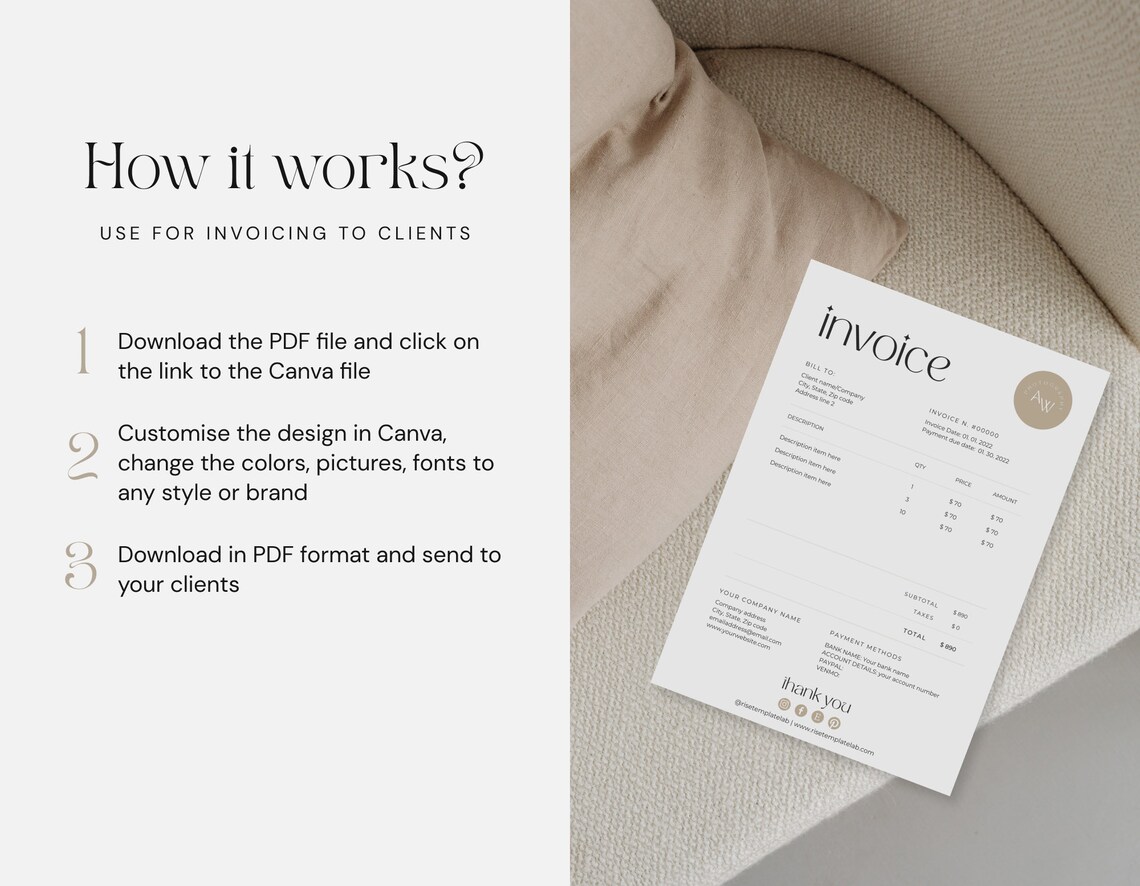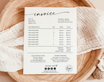 Minimalist invoice template boho small business – Artofit
