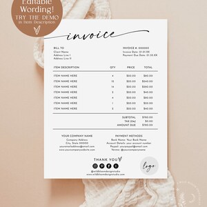 Editable invoice template minimalist business invoice boho services ...