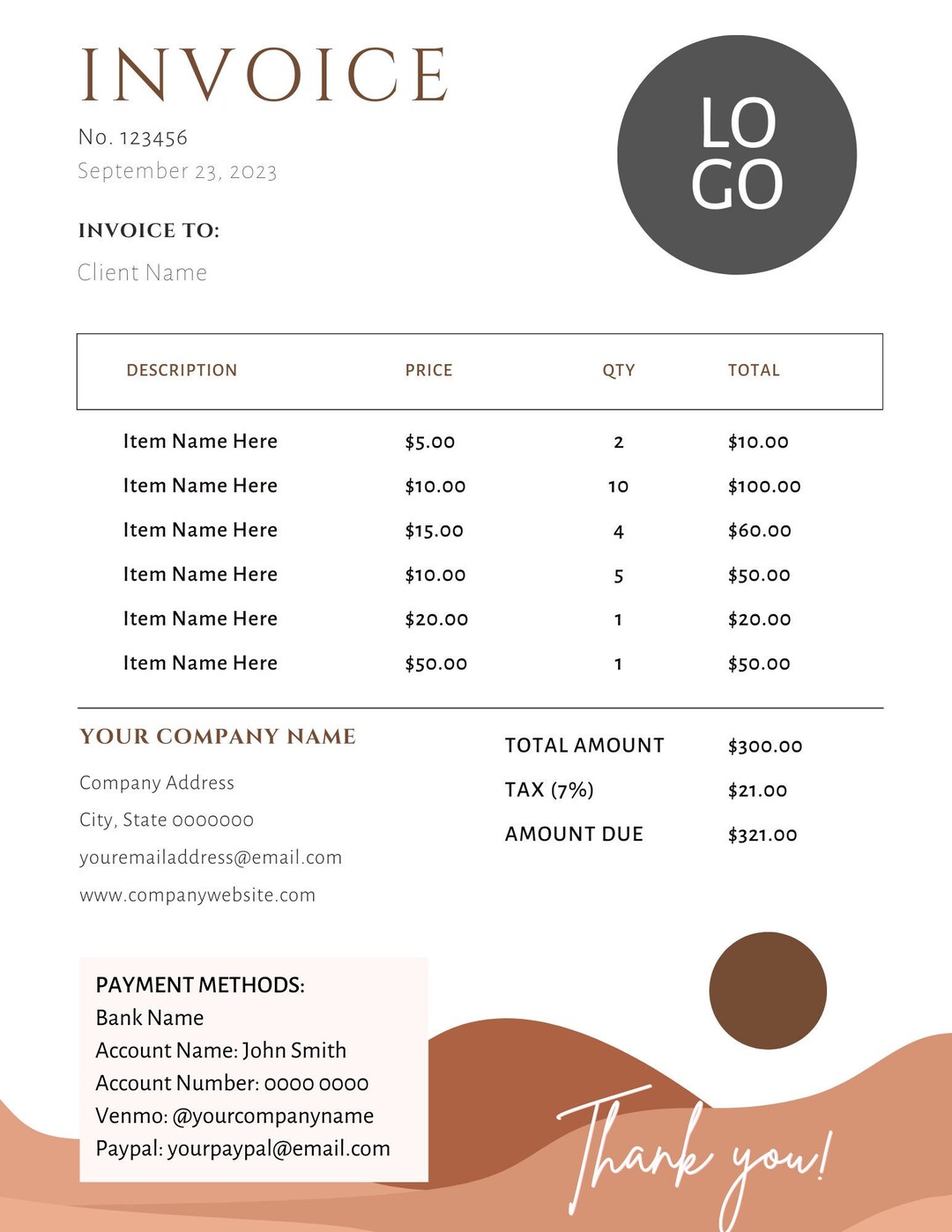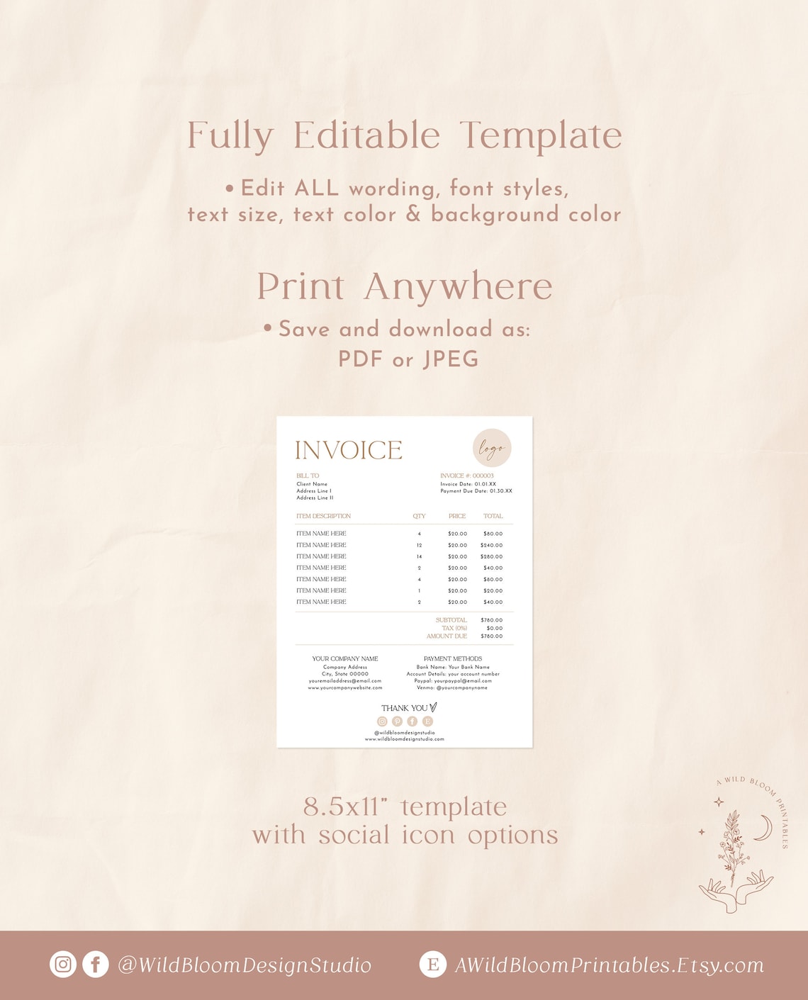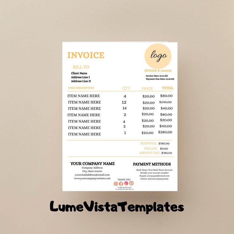 Customizable Invoice Boho Style - Etsy