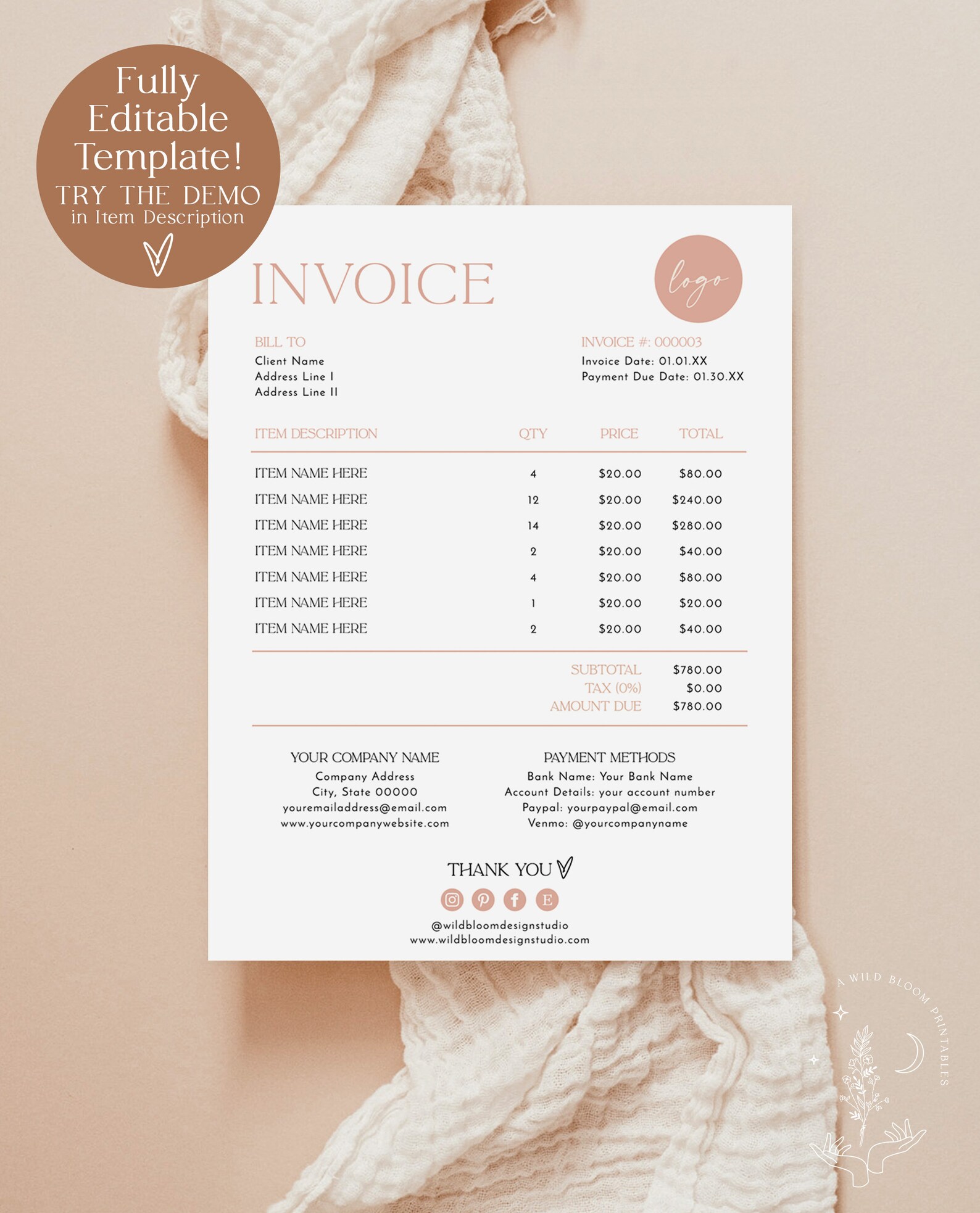 Minimalist Business Invoice Template: Modern Boho Design (editable in ...