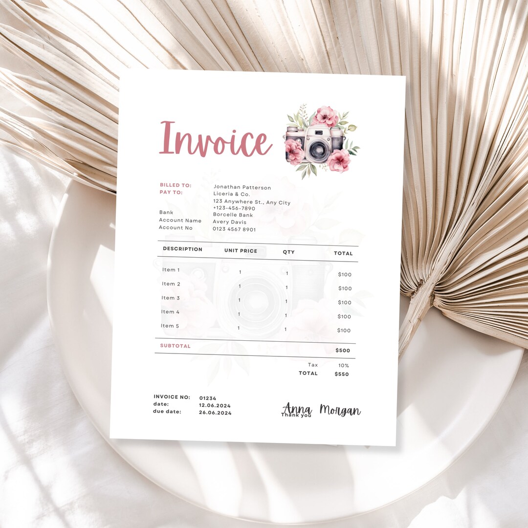 Invoice Template for Photographers, Boho Small Business, Modern Client ...