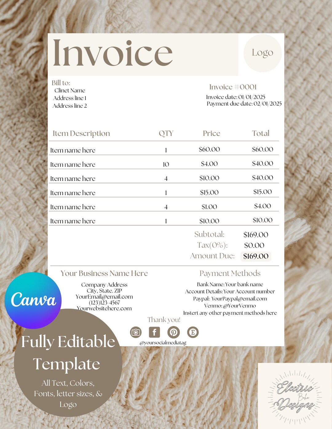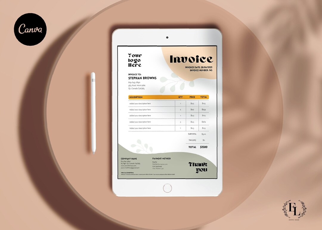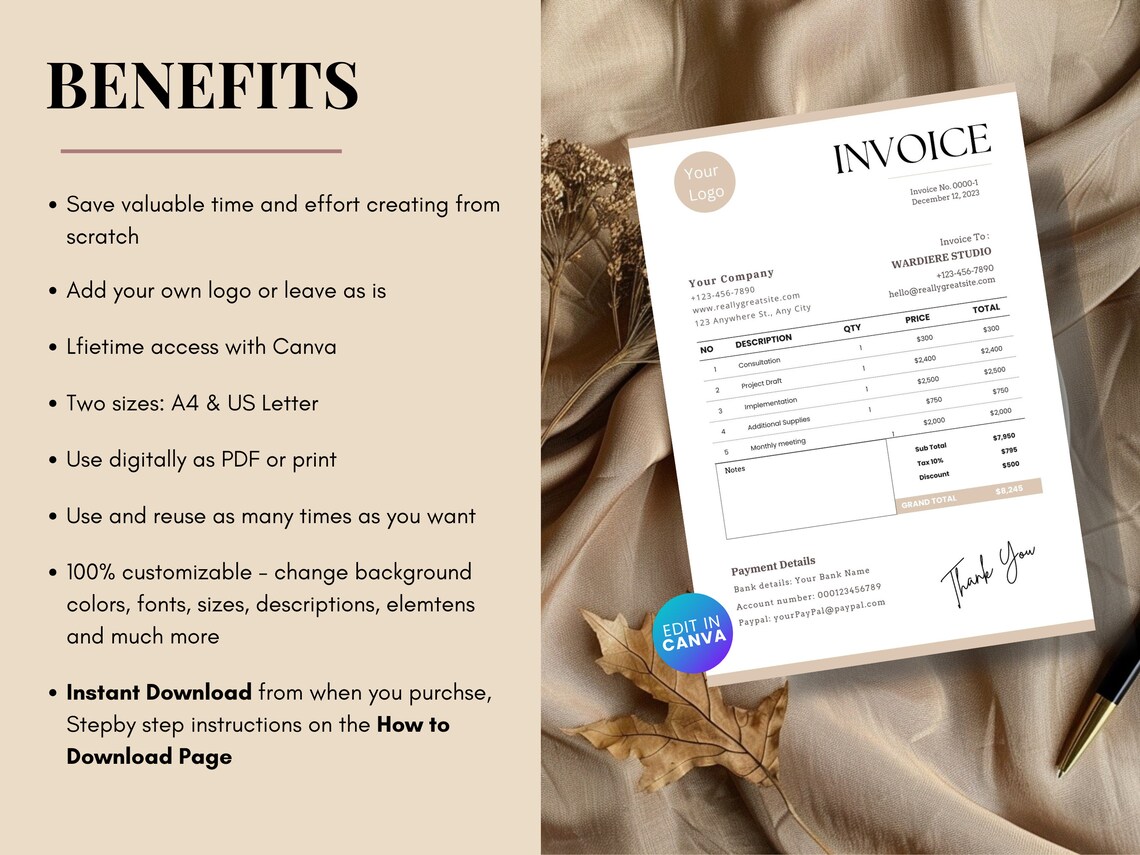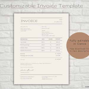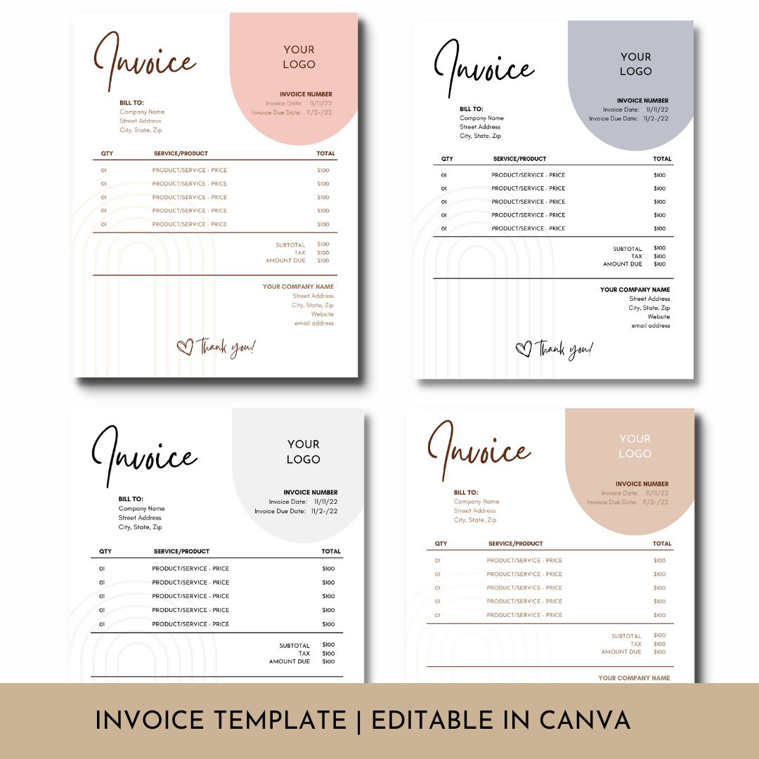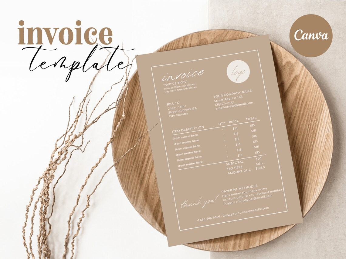 Minimalist Business Invoice Template: Editable Boho Design (canva) - Etsy