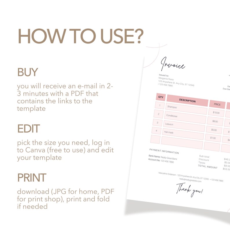 Invoice Template | Modern Boho, Canva Editable Template, Minimalist ...