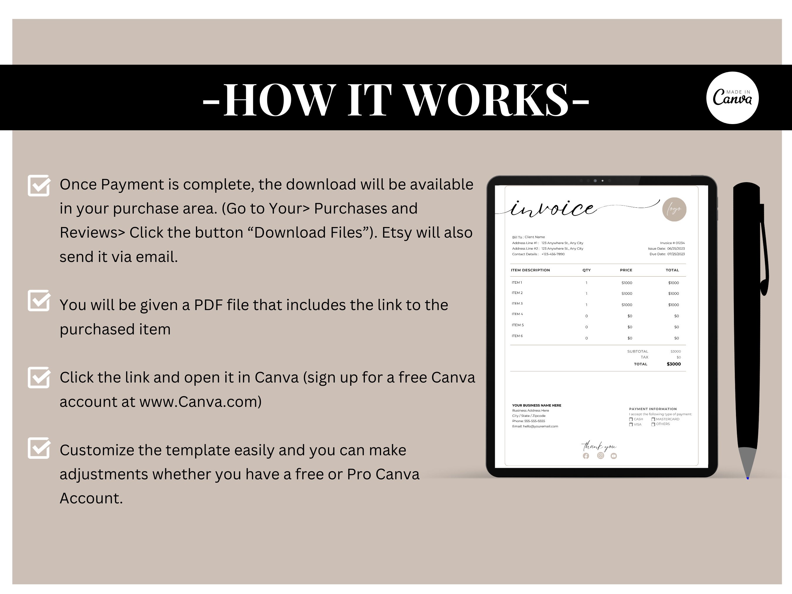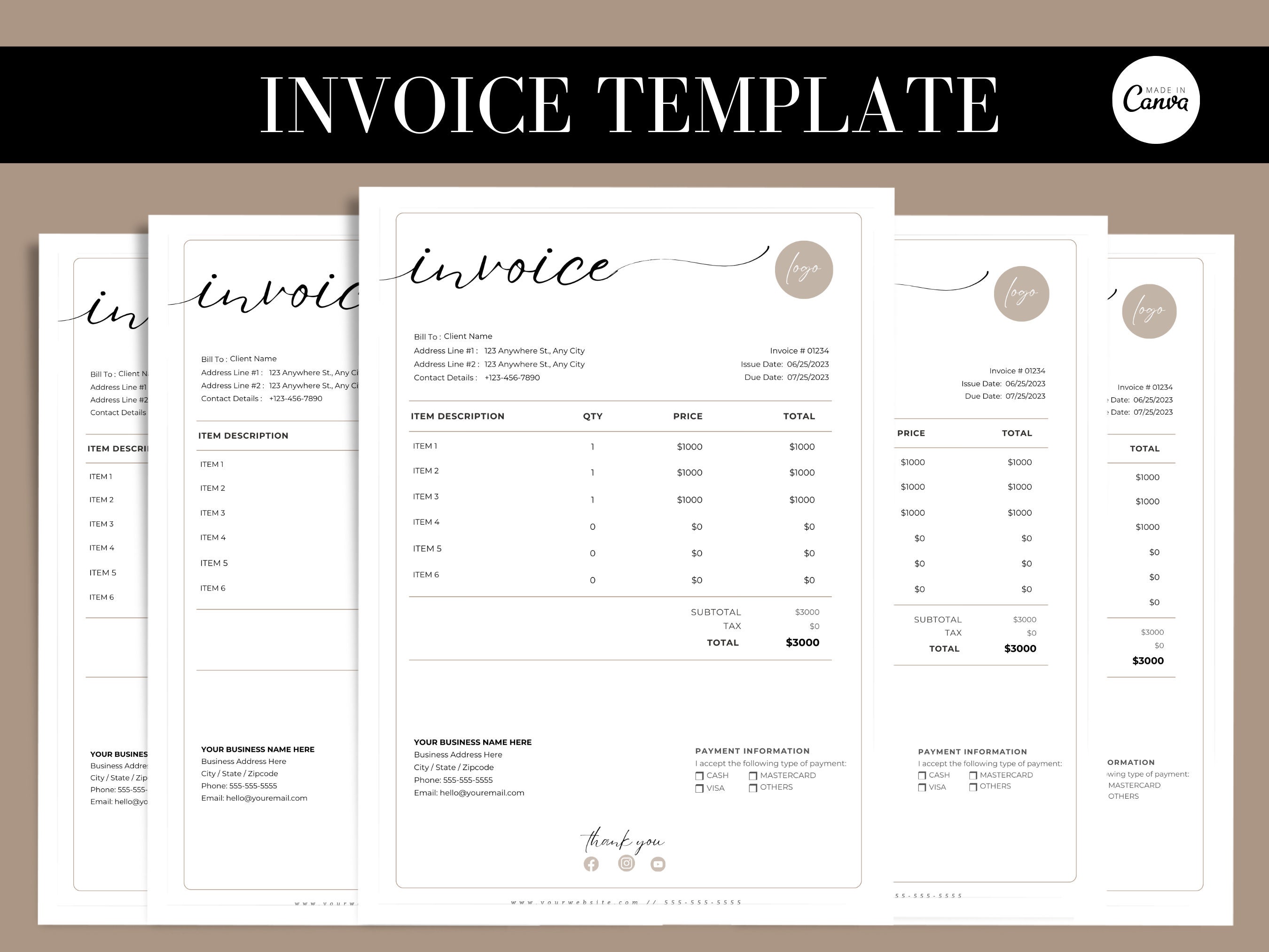 Boho Custom Client Invoice Canva Template, Minimalist Client Invoice ...