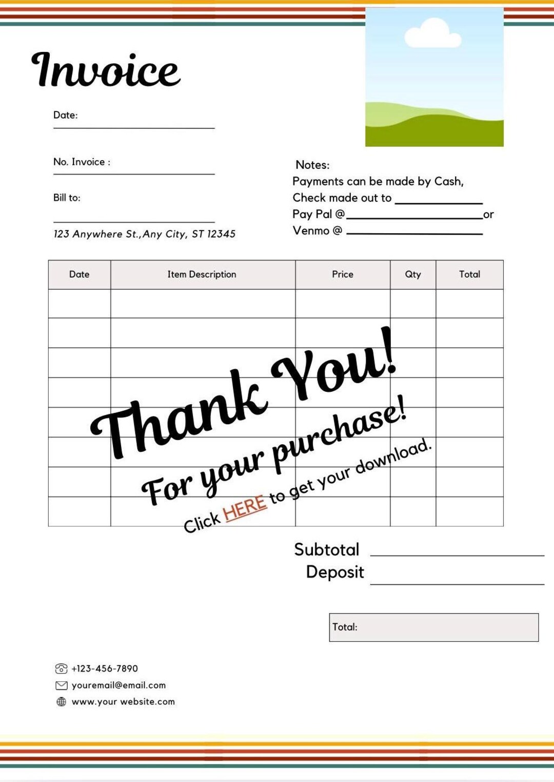 Invoice Template for Small Business Minimal Digital Download Client ...