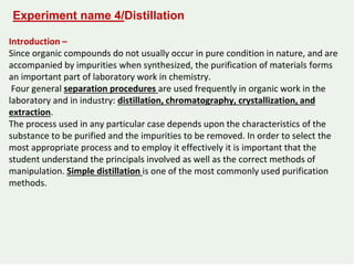 Boiling Point; Simple distillation and fractional distillation/Organic ...