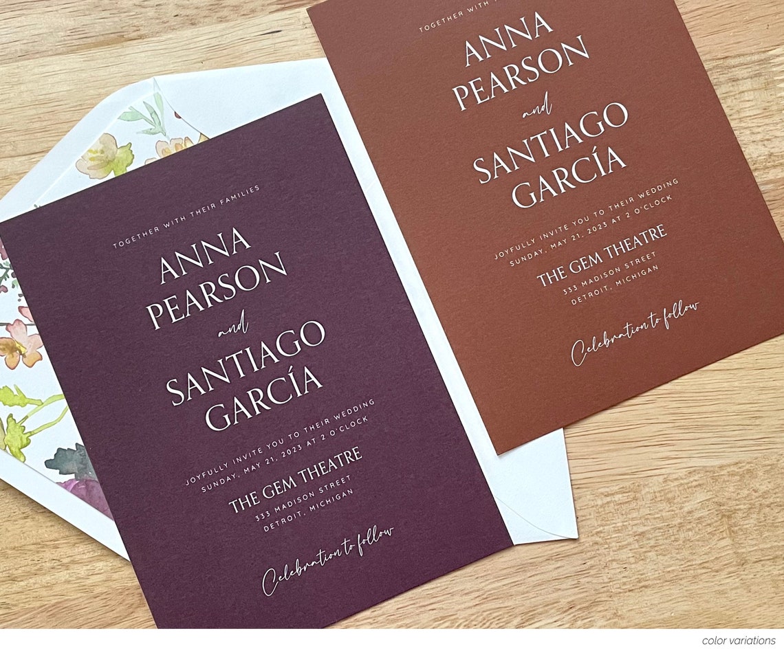 Modern Solid Color Wedding Invitation • Simple Bold Color Block Design ...