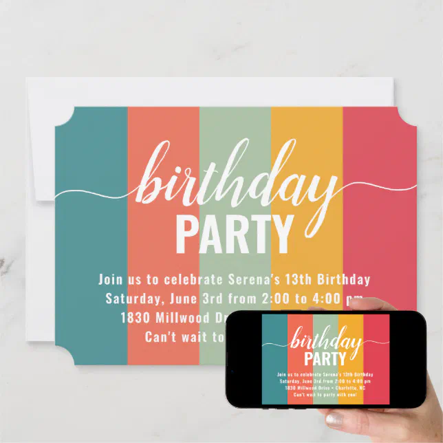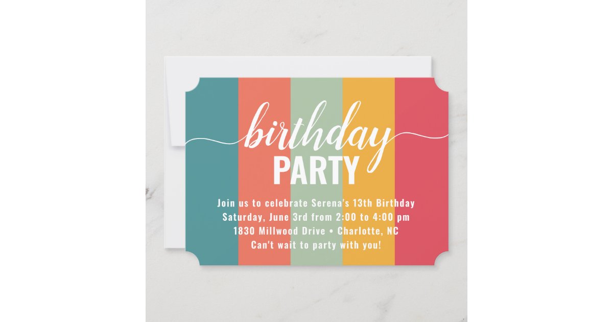 Festive and Bold Color Swatch Birthday Invitation | Zazzle