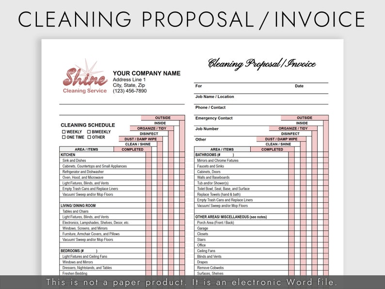 Residential Cleaning Proposal / Invoice for House Cleaning Business ...