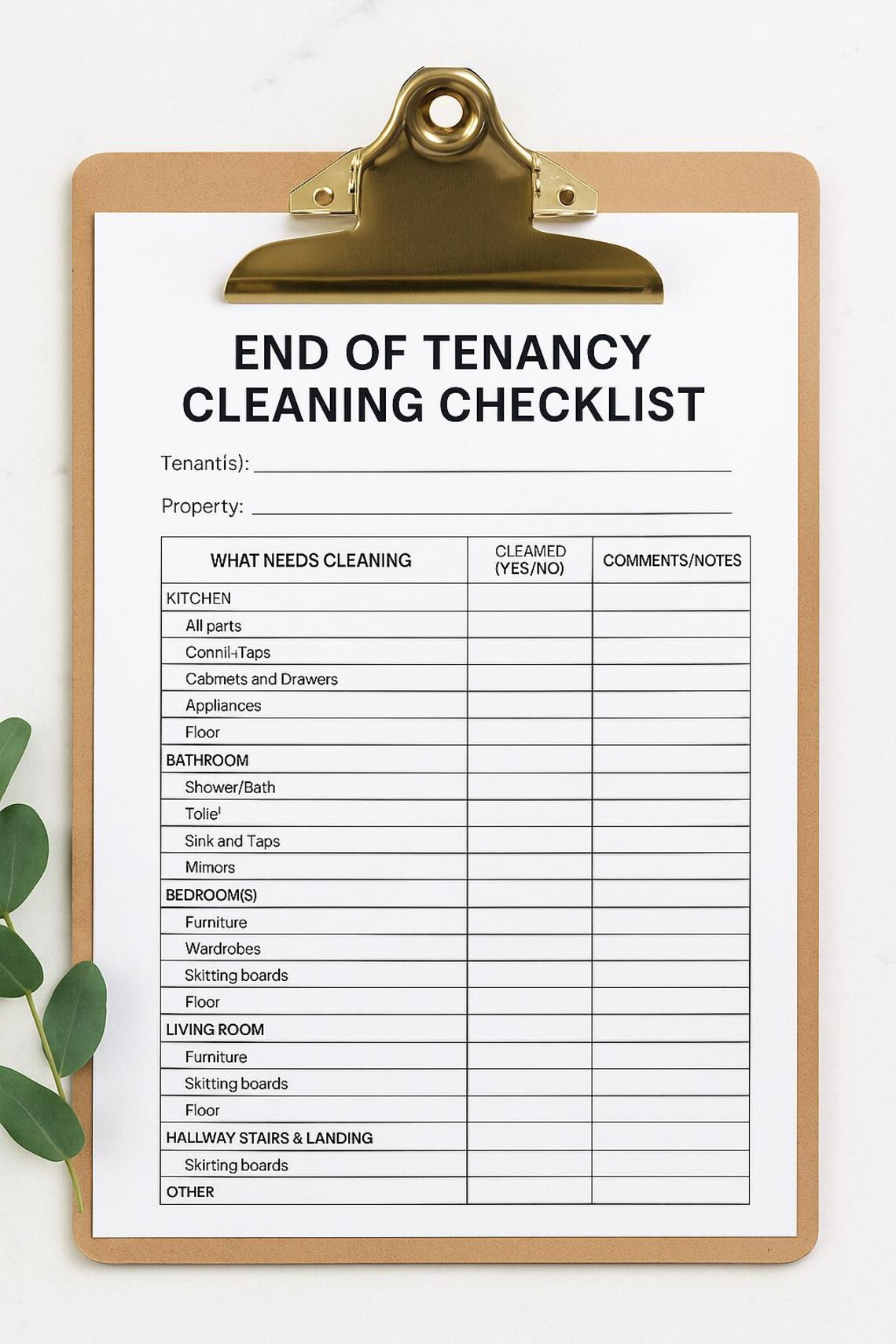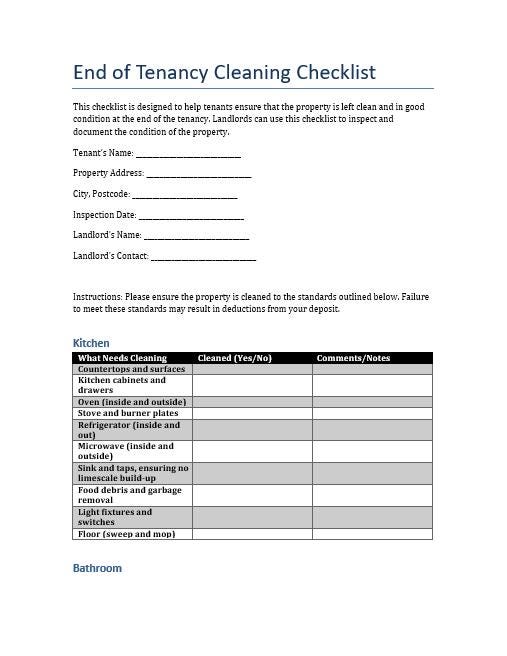 End of Tenancy Cleaning Checklist | Printable Property Cleanliness Form ...
