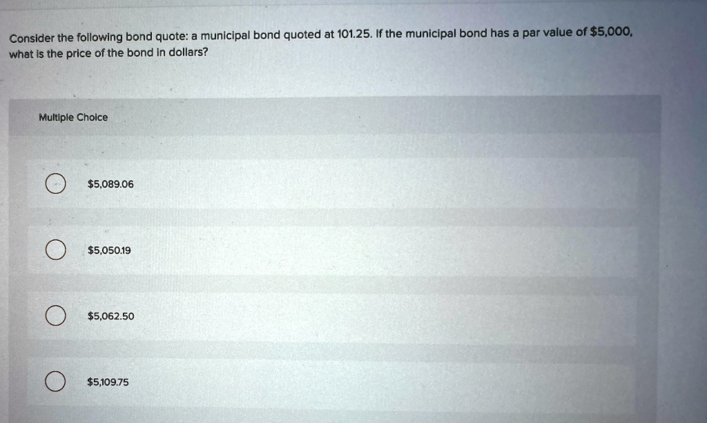 consider the following bond quote a municipal bond quoted at 10125 if ...