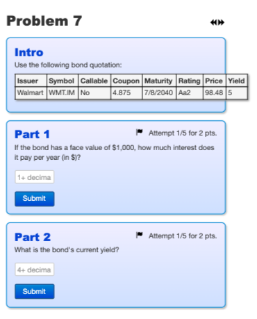 Solved Problem 7 Intro Use the following bond quotation: | Chegg.com