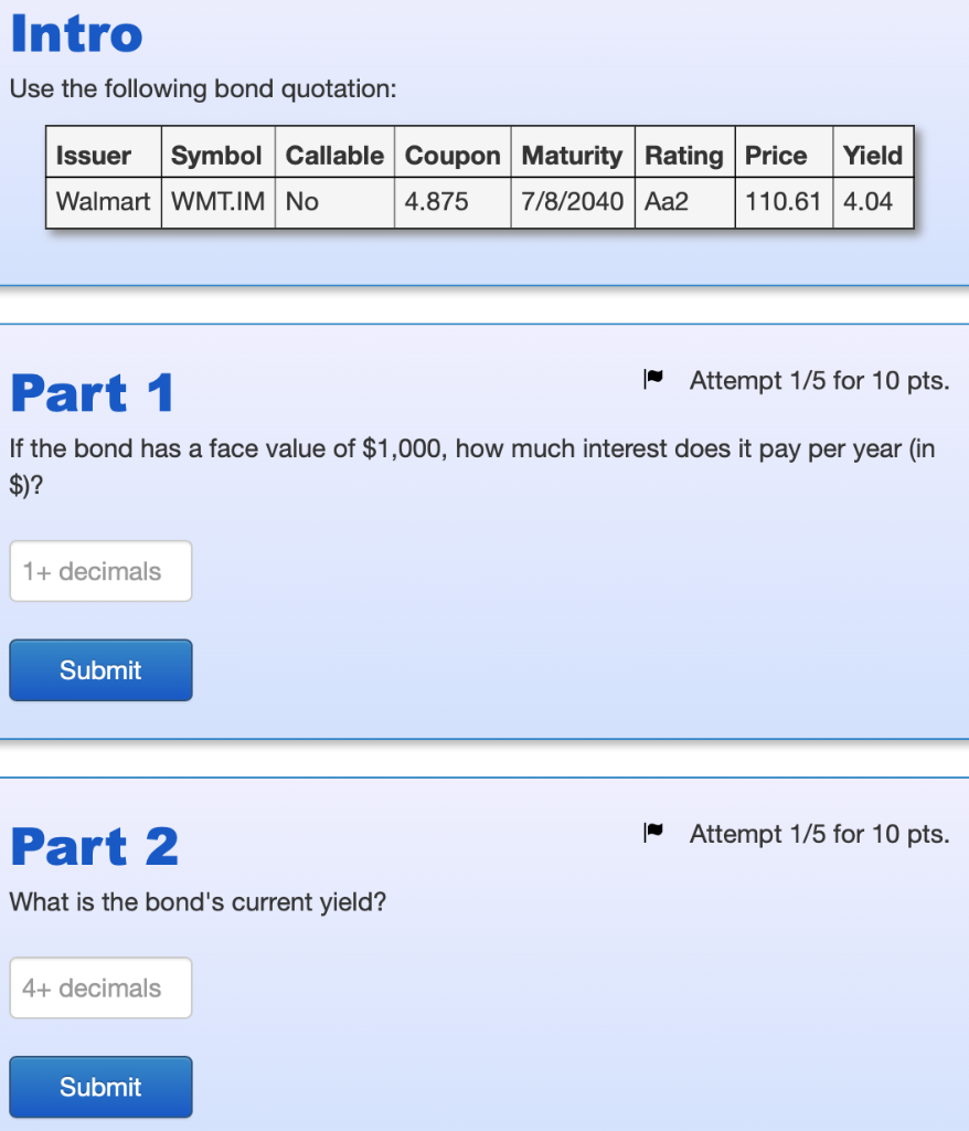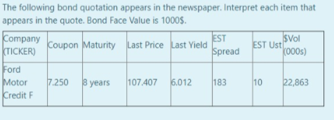 Solved Intro Use the following bond quotation: Issuer Symbol | Chegg.com