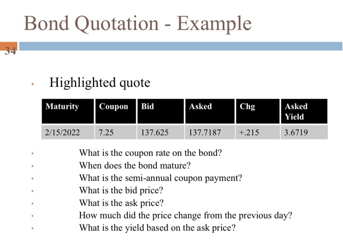 Solved Bond Quotation - Example Highlighted quote Maturity | Chegg.com