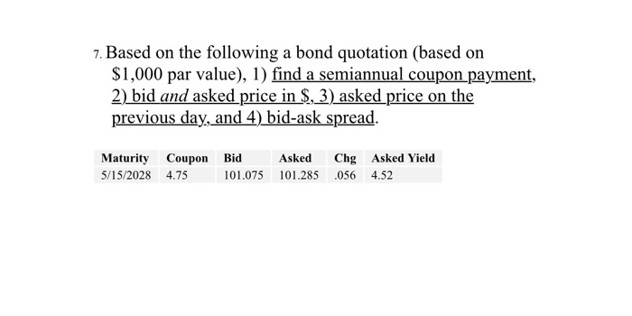 Solved 7. Based on the following a bond quotation (based on | Chegg.com