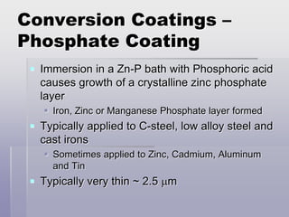 Phosphating is a conversion coating that is applied to steel or iron ...