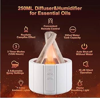 Bonfire Humidifier 250ML with Remote Control, Essential Oil Diffuser ...
