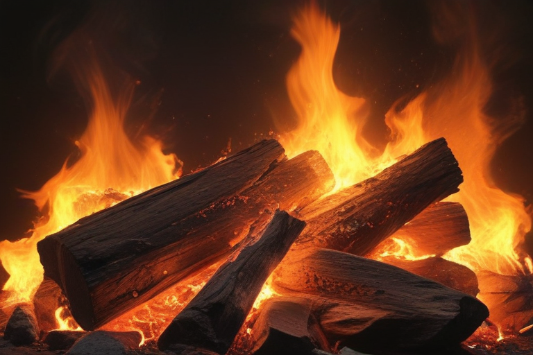 Captivating Flames Dancing Among Stacked Logs in a Warm Bonfire