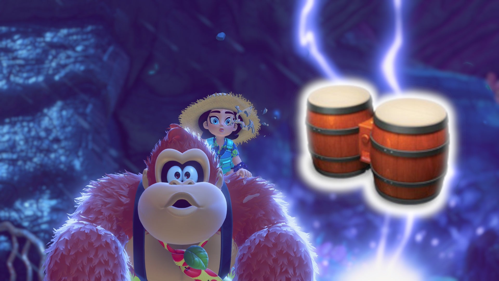 Ja, ihr könnt Donkey Kong Bananza auch mit den Donkey Konga Bongos ...