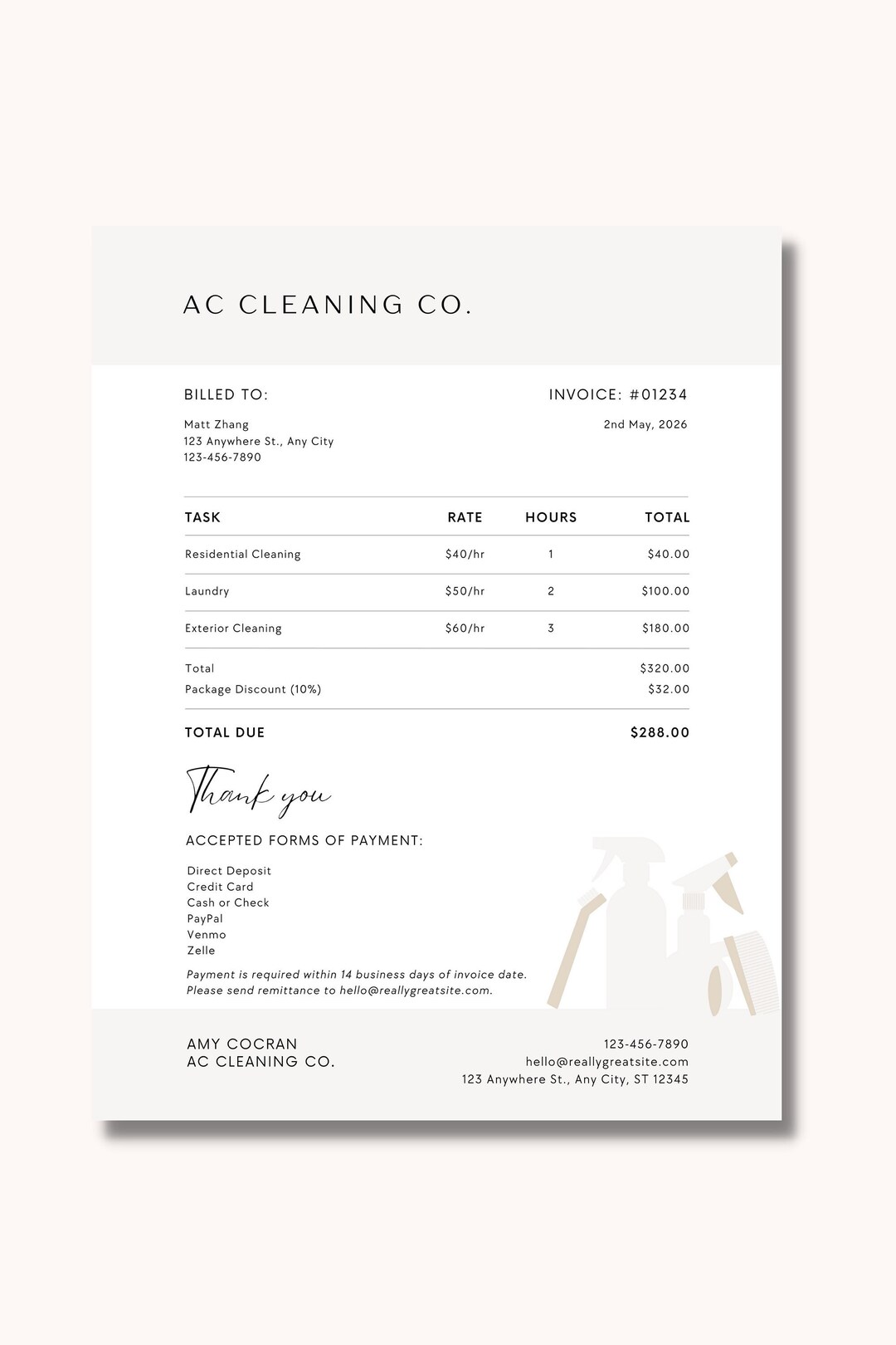 Invoice Templates + Bonus Messaging for Cleaning Business Owners ...