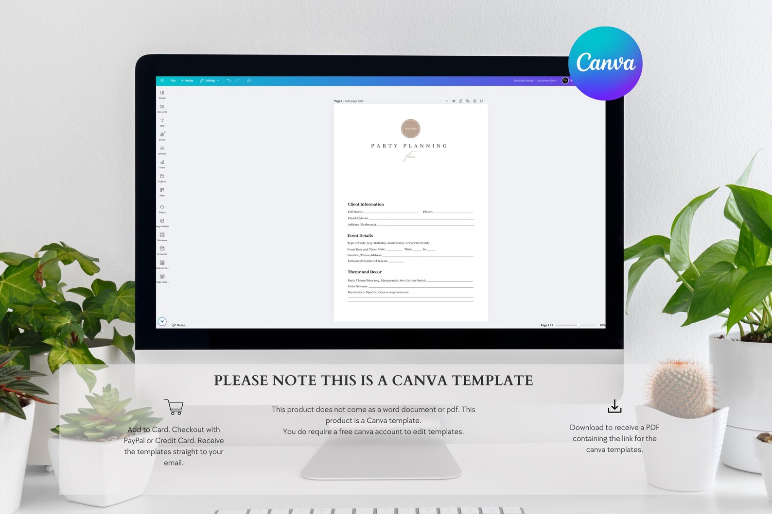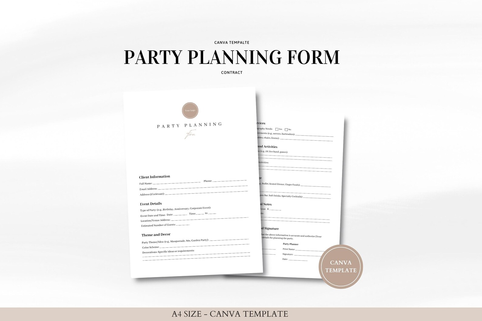 Party Planning Form and Bonus Invoice Canva Template - Customizable ...