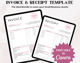 Editable Invoice Template With BONUS Receipt Template Bundle, Printable ...