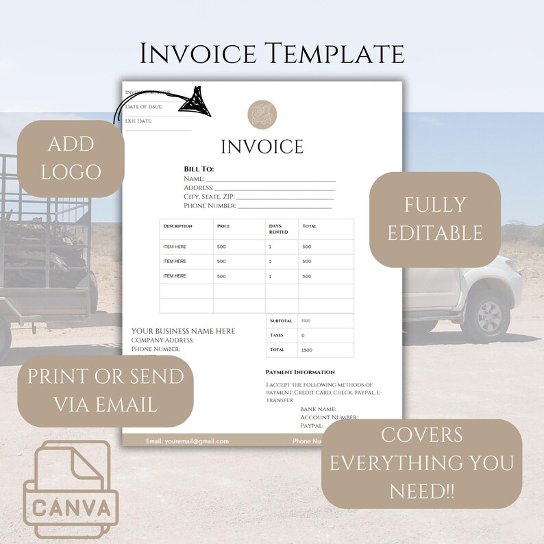 Invoice Template for Small Business & Freelancers | Editable in Canva ...
