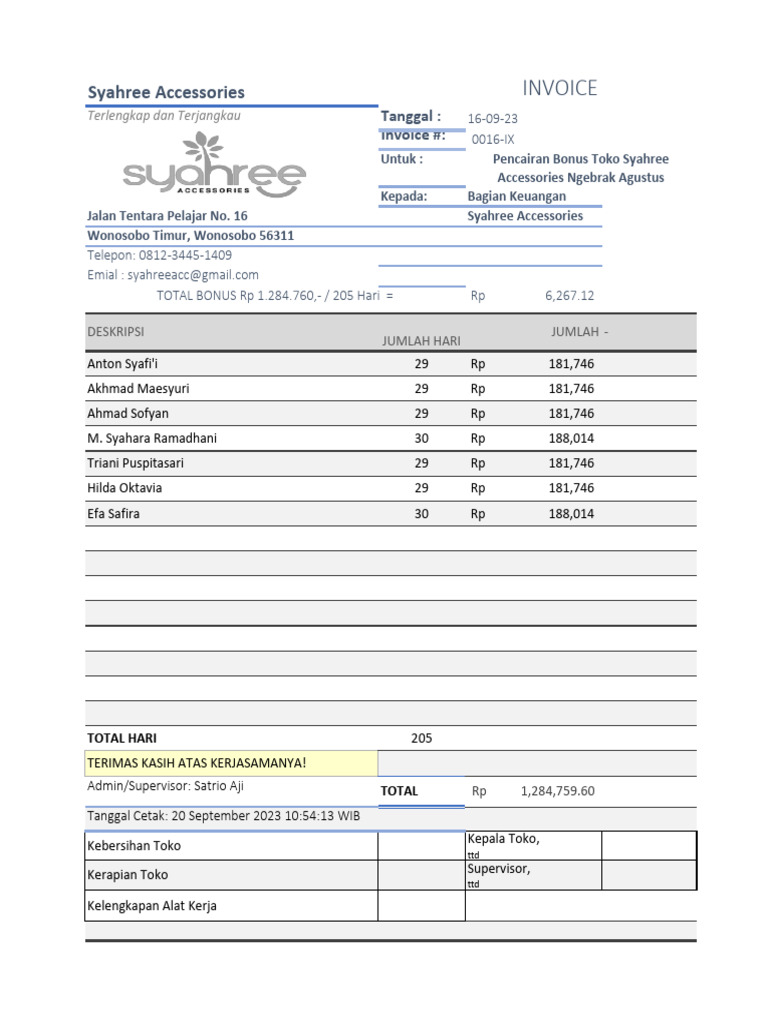 Invoice Bonus Ngebrak Sept Fix | PDF