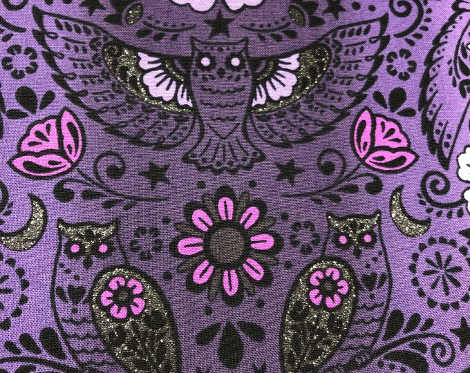 Boodacious, Robert Kaufman, Fabric, Halloween, Owls, Floral, Glitter ...