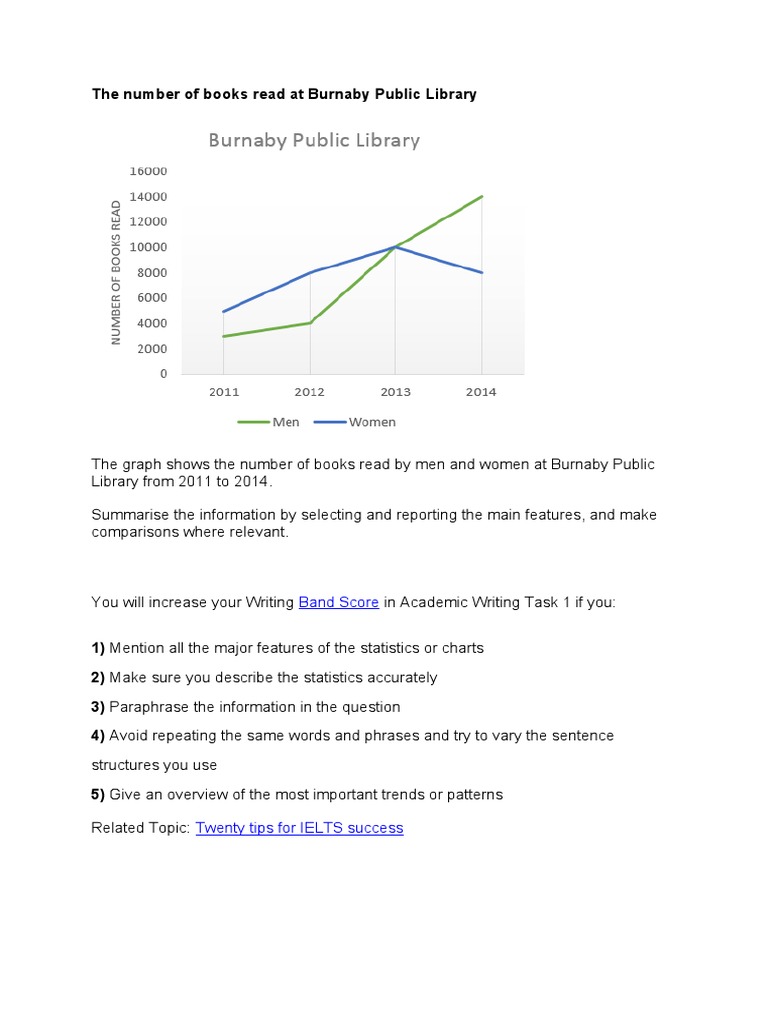 Band 9: The graph below shows the number of books read by men and women ...