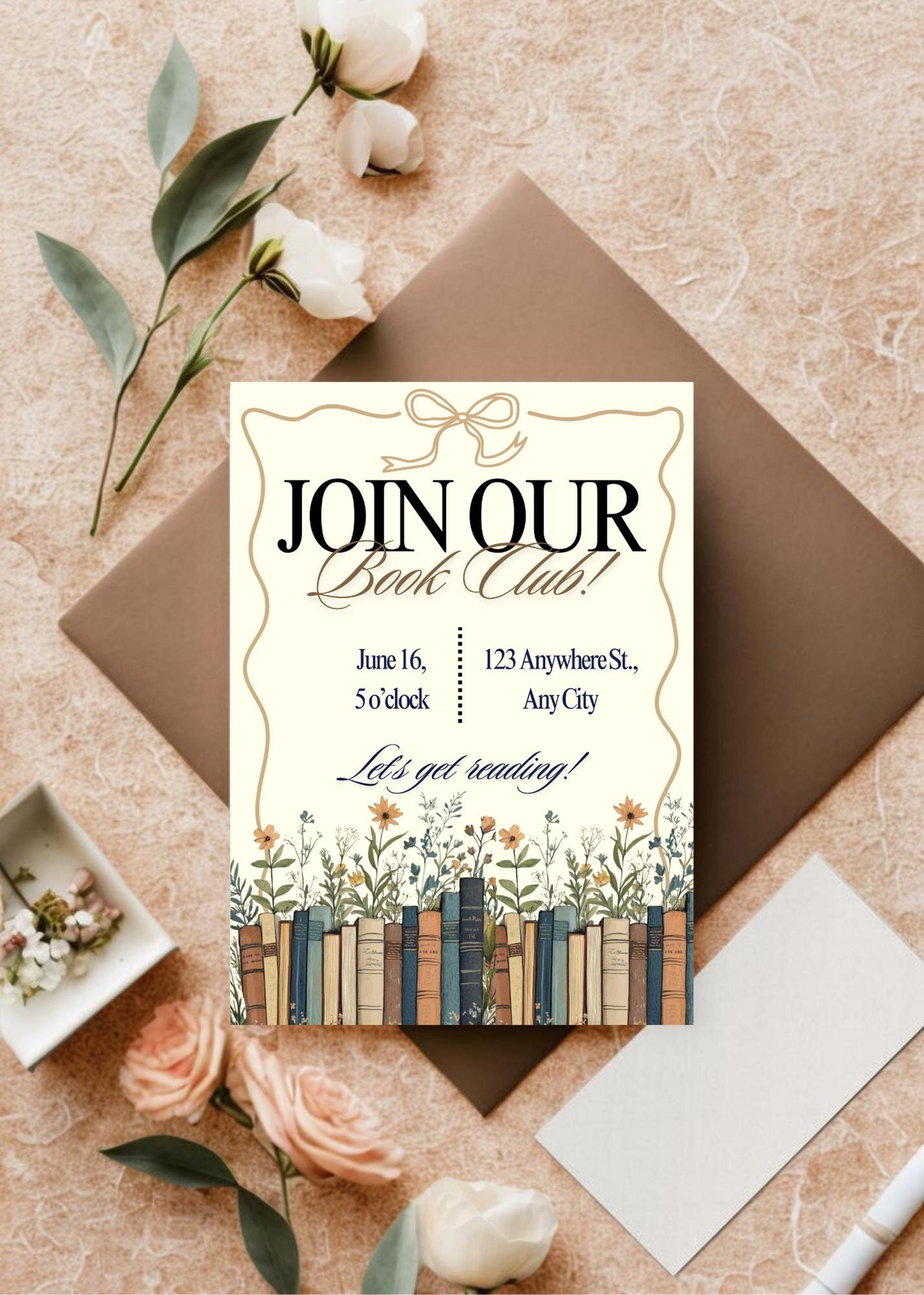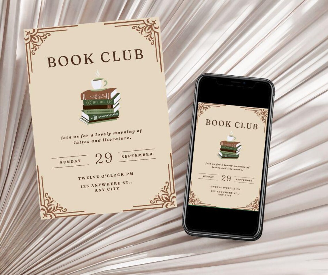 Cozy Elegant Book Club Invitation Canva Template | Customizable Digital ...