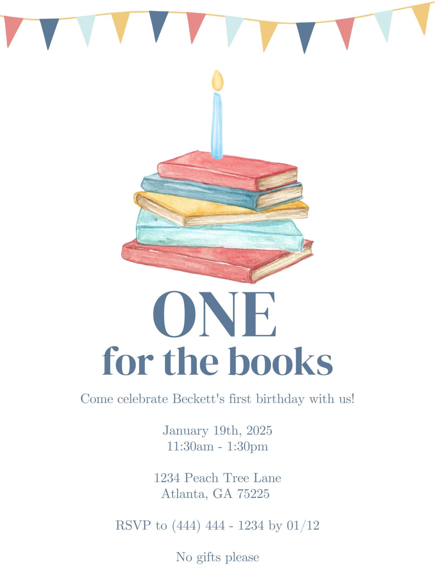 Book Themed First Birthday Invitation | ONE for the Books | Editable ...
