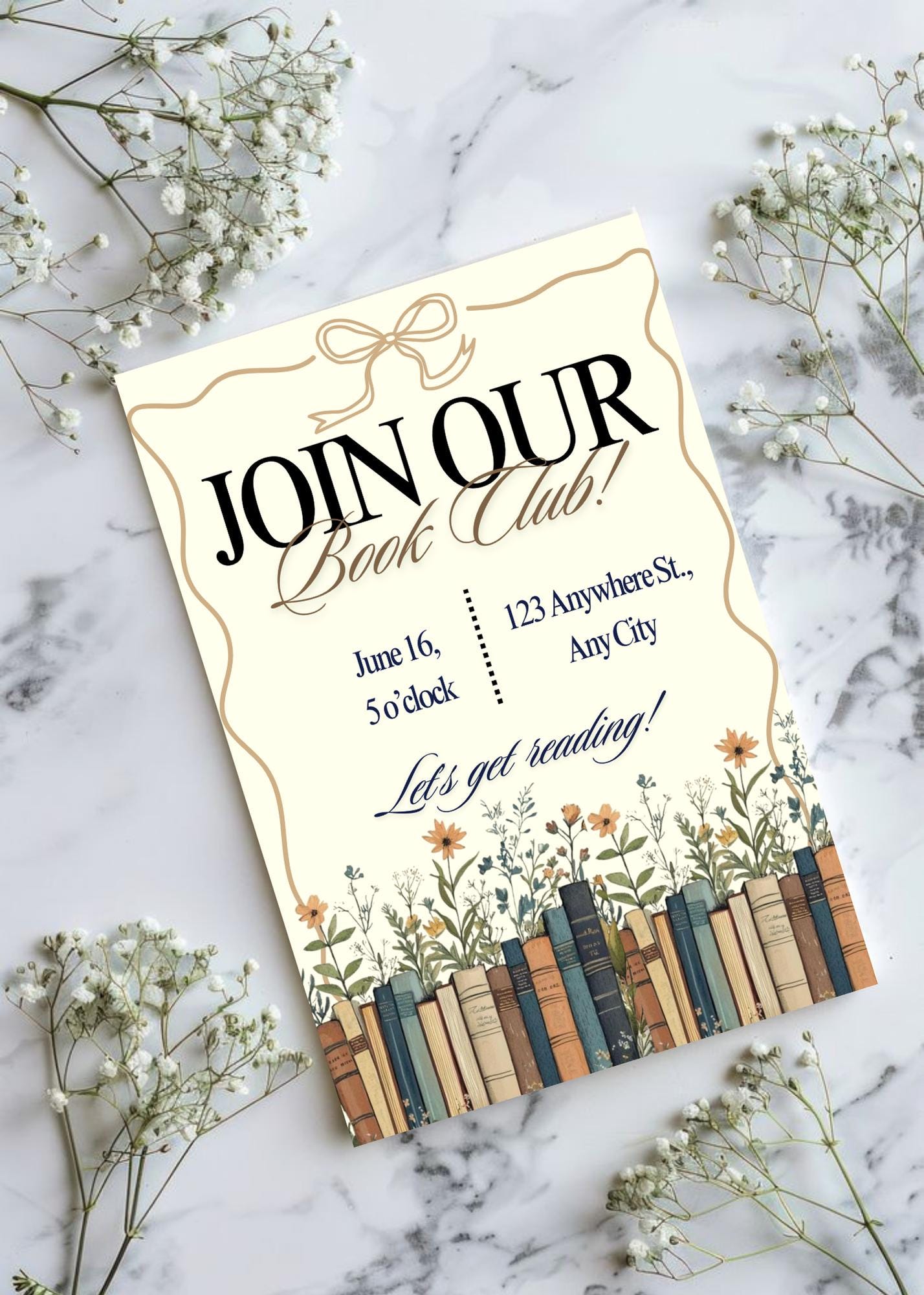 Editable Book Club Invite Template, Fully Customisable Text, Hosting ...